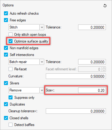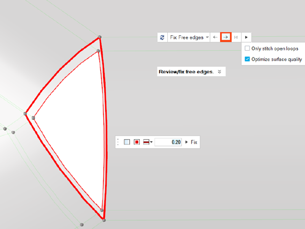 - In the Free edges section, select the Optimize surface quality check box.
