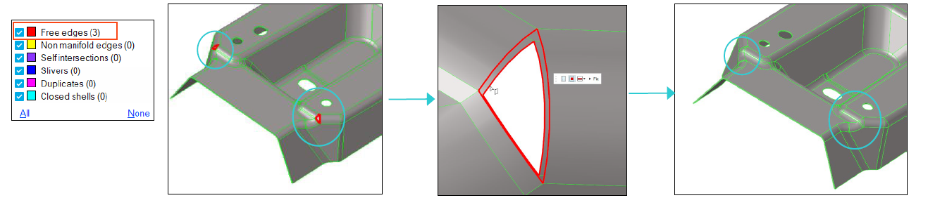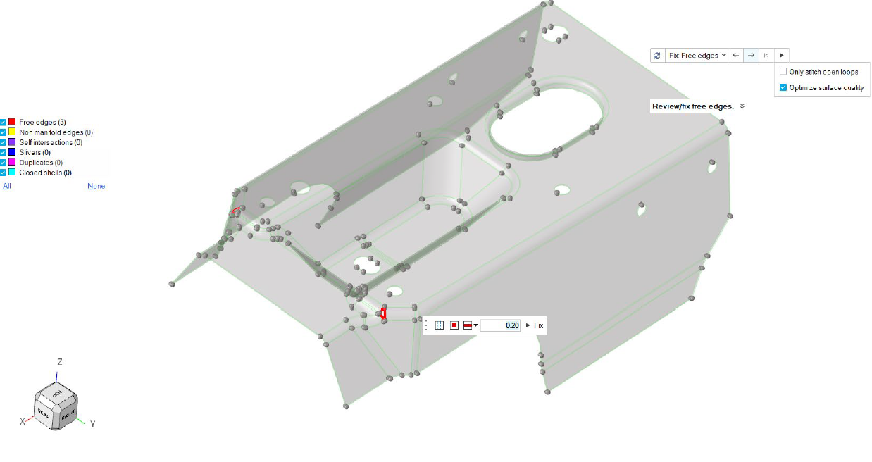 - Use the Surface repair to find, review, and fix any geometric errors in the model surfaces