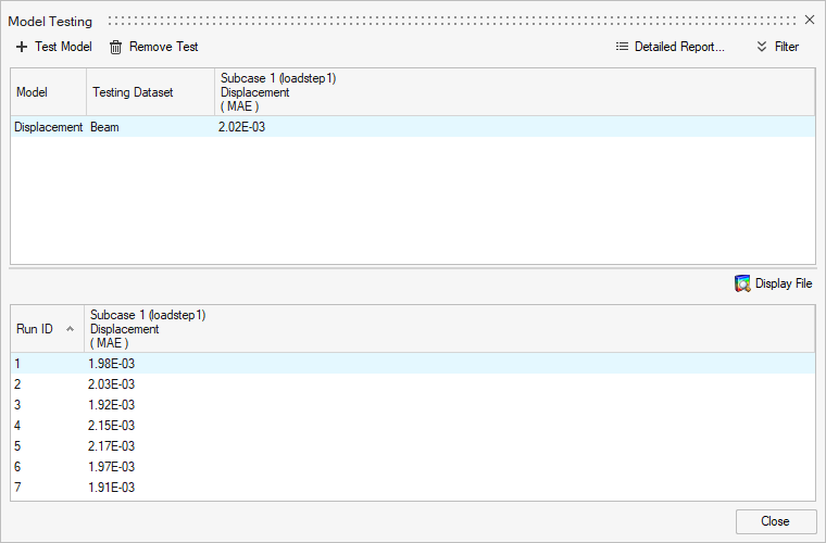 Inside the training_files folder, there are seven .h3d files named run__000X_m_1_fillet_cantilever_2.h3d and seven .json files named run__000X_m_1_fillet_cantilever_2_inp.json files. Each .json file contains exactly two material properties, Young’s modulus and Poisson ratio with different values. It is necessary to have consistent labels and number of properties across all the samples.