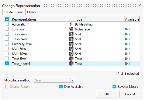 - For Representation, select CAD.