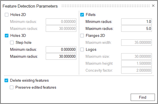 - Set the Minimum Radius for Fillets to 1 and Maximum Radius to 5