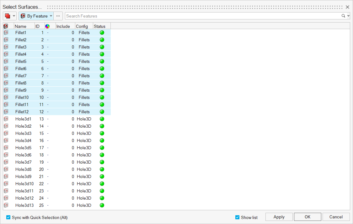 - Review the selected features and close the Feature Manager dialog.