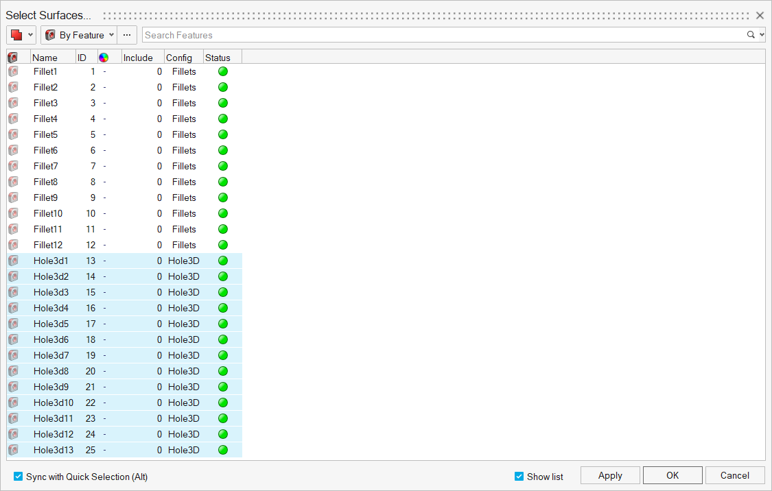 - Select only the Holes 3D and Fillets boxes, as shown in Figure 36.