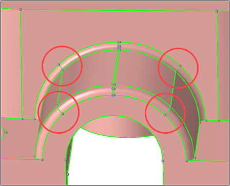 Split the fillets as shown in Figure 18 by clicking and