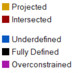 モデリングウィンドウの左上隅にあるスケッチの凡例には、スケッチエンティティが投影されているか交差しているか、スケッチカーブが未定義、完全定義、過剰制約のいずれであるかが表示されます。