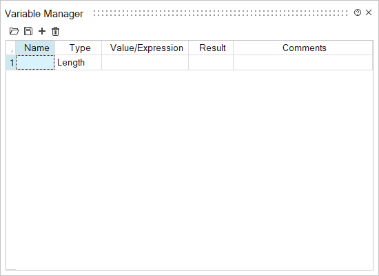 をクリックして名前を入力し、Enterキーを押します。 重要: 名前フィールドは空白にできません。変数名は、数学演算子、数値、数学定数、Python予約語、単位指定子であってはなりません。名前にはアンダースコア(_)を含めることができますが、スペース、その他の特殊文字は使用できません。 - タイプカラムで、変数のタイプを選択します。