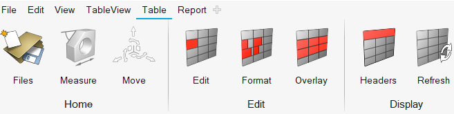 リボンからアイコンをクリックして、ツールを開きます。 図 1. テーブルリボン