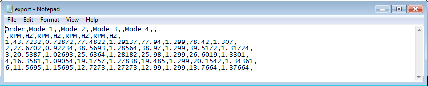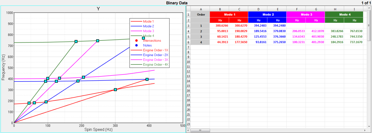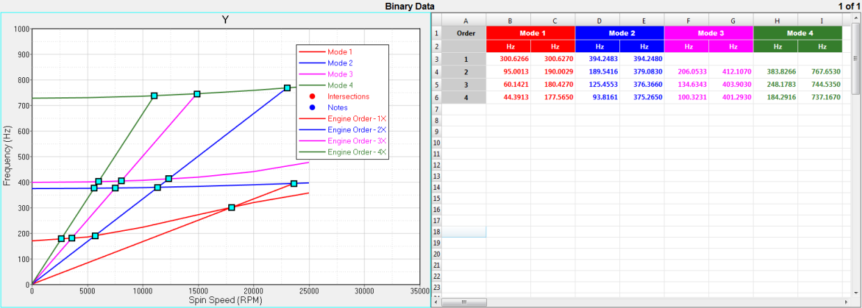 5. Engine Order List欄で、表示したい次数ラインについて固有モードとの交差値を入力します(例えば、1-4)。半次数の入力も可能です。1-4.5と入力した場合、次数は、1, 1.5, 2, 2.5, ...と表示されます。1-4と入力した場合は、整数のみが使用されます。