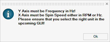 11. OptionsパネルでEnable Unit Scalingを選択しなかった場合は、Multiple Curves MathメニューからCampbell Diagramを選択すると、以下のメッセージが表示されます: