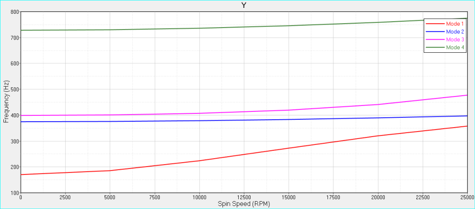 回転体動力学システムでは、流体軸受け内の流体力学的条件または誘起ジャイロ作用によって、固有振動数が回転速度に左右されることがよくあります。これは、キャンベル線図を使って表すことが可能です。