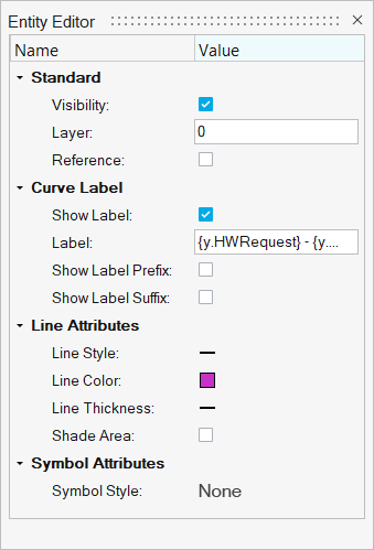フローティングエンティティエディターを使用して、プロットエンティティの属性を編集します。