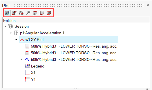 Plotブラウザ内には、予め定義された7つのブラウザビューモードがあります。これらには、Plotブラウザの一番上にあるアイコン群からアクセスできます。