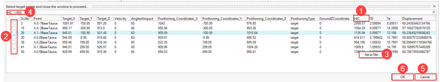- Detailed Sessionをクリックすると、Select target optionsウィンドウで処理する衝撃位置を選択するよう促されます。