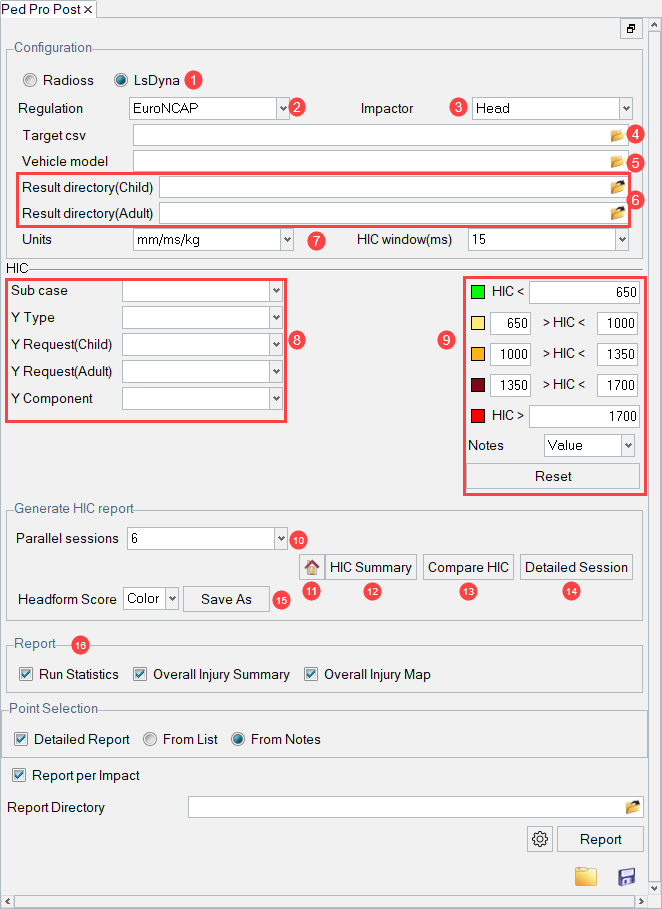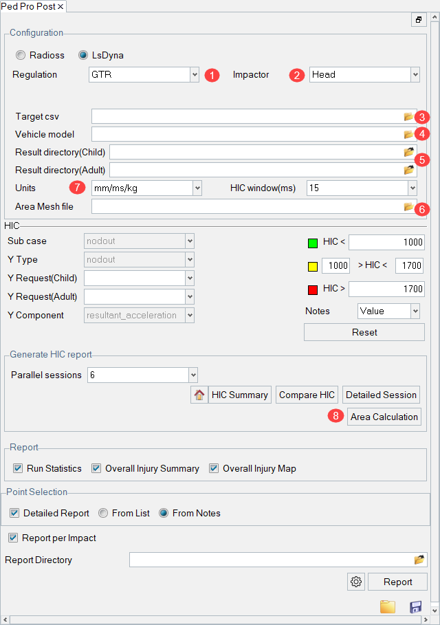 注: Pedestrian Impactは、Vehicle Safety Tools + HyperView - MultiCoreプリファレンスではサポートされていません。