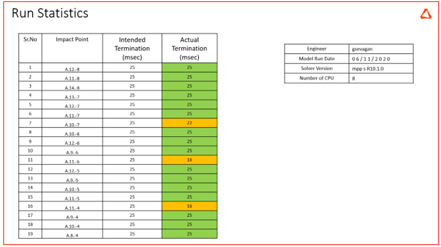 本ツールは時刻歴および結果ファイルを入力として使用し、歩行者安全規則であるGTR、EuroNCAPおよびHomologationに適合しています。Pedestrian Impactは最小限の入力でのプロセスを自動化するため、より少ない人的エラーでデック生成のリードタイムを短縮します。