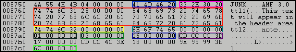 AMFフッターはファイルの末尾にJUNKチャンクとして格納されます(下のHEXダンプを参照)。図 1.