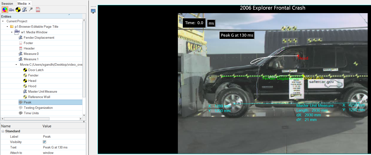 例えば、下の画像では、3つの注釈とマーカーがMediaブラウザに表示され、グラフィックスウィンドウに表示されています。w1:Media Windowの下にリストされている各注釈の横のアイコンは通常表示で、グラフィックス領域に注釈が表示されることを示しています。