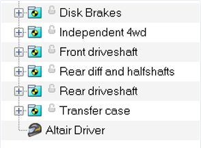 四輪駆動(4WD)車両モデルでは、フロントアクスルとリアアクスル間に動力配分メカニズムが採用されています。これはオープンデファレンシャルまたは粘性カップリングになる可能性があります。MotionViewの車両ライブラリでは、どちらのオプションも提供されています。