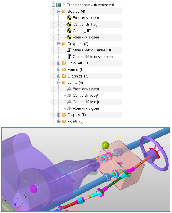 モデルを作成すると、モデルブラウザにトランスファーケースが表示されます。図 2. モデルブラウザのトランスファーケースシステム