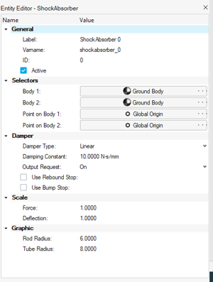 図 10. Entity Editorのショックアブソーバーのパラメータの例