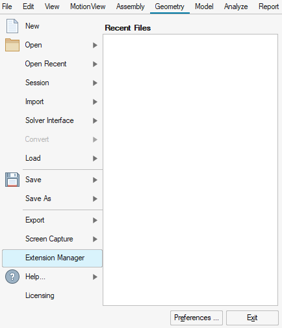 Extension Managerダイアログに、MotionViewに追加されたすべてのエクステンションが表示されます。