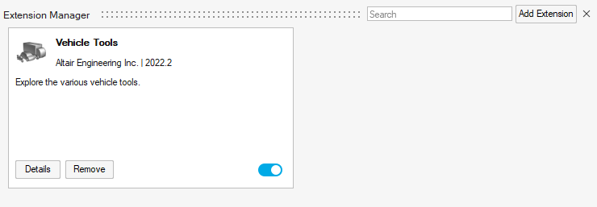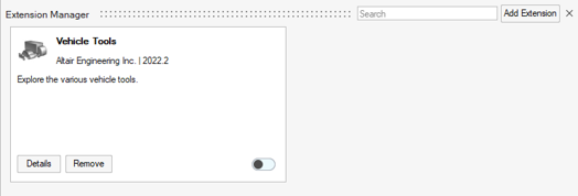 Loadボタンを右側にスライドして、Vehicle Tools Extensionを読み込みます。