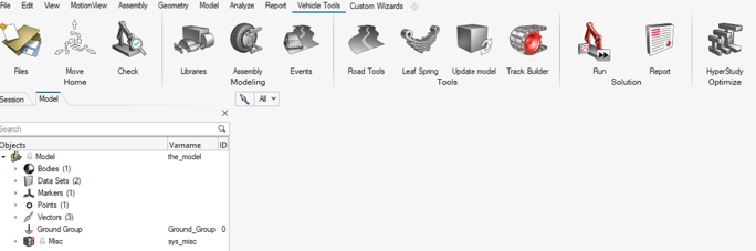 図 3. MotionViewに読み込まれたVehicle Tools Extension