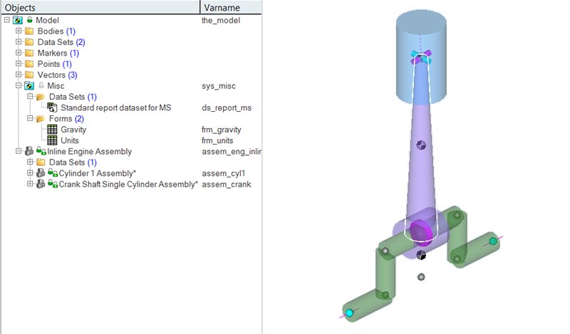 アセンブリの概念を説明する単気筒エンジン機構のモデル例が~hw_install/demos/mv_hv_hg/modeling/mdl_examples/container_entities/assemblyに用意されています。