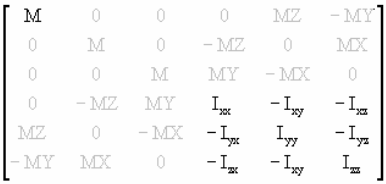 - 作成されたファイルを開き、Inertia Matrix for Model (Using Center of Gravity As Center)というタイトルの出力の最後のマトリックスを選択します。データは次のようになっており、必要な値は太字部分です: