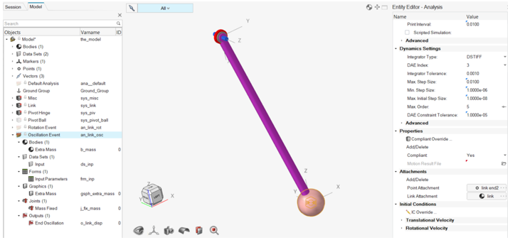 このアナリシスには以下が含まれています:- リンク端部に余分質量を追加するためのアタッチメントPoint AttachmentおよびLink Attachment(ボディ)。