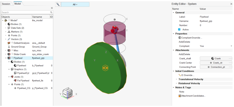Flywheel systemは以下で構成されます:図 15. スライダークランクモデル