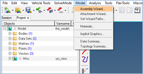 3. Model > Assembly Wizardをクリックします。