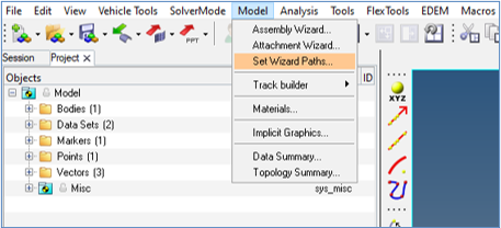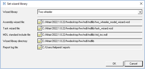 2. モデルメニューから、Set Wizard Pathsを選択し、Two wheeler Wizard Libraryを設定します。