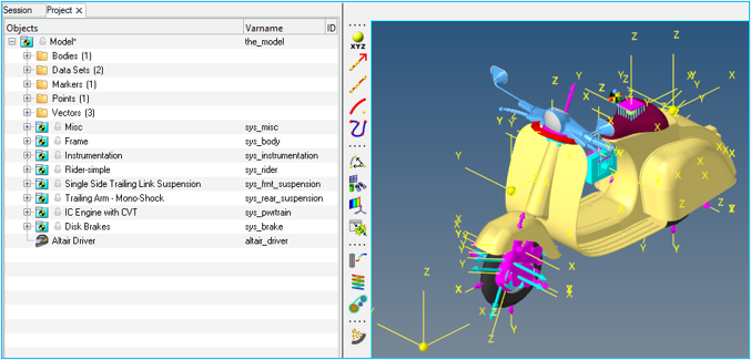 車両構築プロセスを完了すると、ICエンジンとCVTを含むスクーターモデルがMotionViewにロードされます: