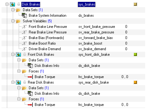 | Brake boost ratio | ユーザー定義のソルバー変数。 PBrake line = KBrake boost * PMC デフォルトのBrake boost ratioは、Brake system infoデータセット内のユーザー定義の定数 |