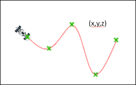 ドライバー経路をデカルト座標系でのセンターラインポイント群のテーブルとして定義することが可能です。ドライバーは、節点間の補間にAKIMA補間法を使用します。