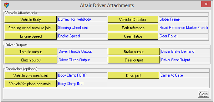 7. AttachmentsボタンをクリックしてAltair Driver Attachmentsダイアログを開きます。