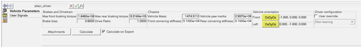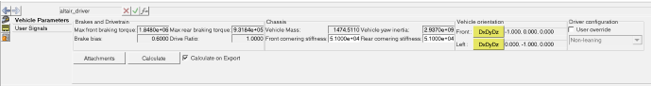 5. Calculate on Exportをクリックして、モデルをエクスポートするたびにDriverで車両パラメータが計算されるようにします。これにより、モデルを変更するとDriverによって必ず車両パラメータが更新されます。