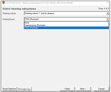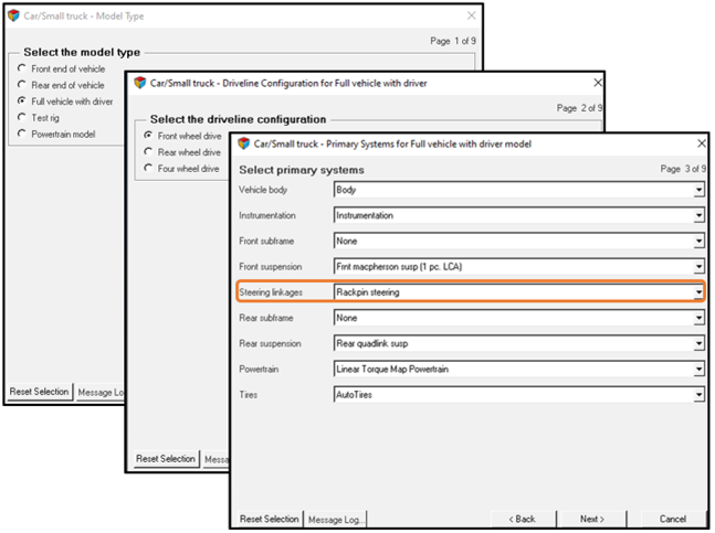 ダブルピニオン構成の電動パワーステアリングシステムは、Car/Small truckライブラリのラックピニオン型ステアリングシステムおよびHeavy Truckライブラリのピットマンステアリングシステムに使用するAssembly Wizardプラグインに用意されています。