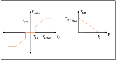 に達するまで線形に増加します。車両の安定性と制御性を維持するために、Tsatの値は車両の縦速度の増加に伴って線形に減少もします。運転者の入力トルク