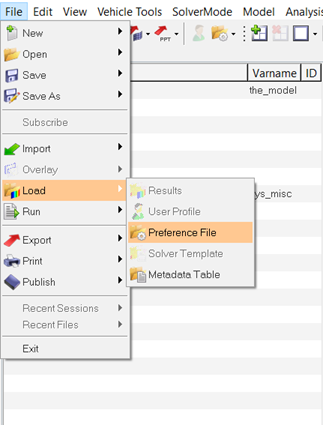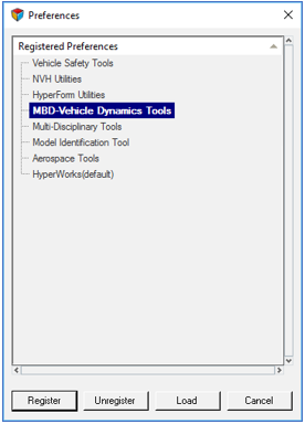 MBD-Vehicle Dynamicsツールは、プリファレンスファイルとして読み込む必要があります。