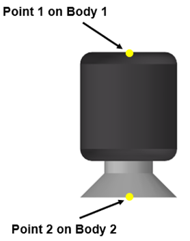 - 同様に、2番目のポイントを選択します。通常、空気ばねはシャシーと車軸の間で作動します。Body 1のPoint 1は空気ばねの上部を定義するのに対して、Body 2のPoint 2は空気ばねの下部を定義します。