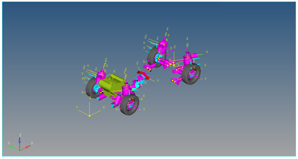 このイベントは、MotionView Assembly Wizardを使用して構築したフルビークルモデルで動作するように設計されています。Task Wizardを使用して追加したこのイベントは、自動的にモデルに付加されます。また、イベントのアタッチメント方式に厳密に従っていれば、手動で構築したモデルでもこのイベントを使用できます。