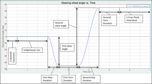 | +First Turn Duration | Steer hold complete/begin second step input | ステアリングの固定が完了し、2度目のステアリング入力が開始されます。2回目のステアリング入力は、2回目のステア角と2回目のステップ期間を入力として使用するステップ関数です。 |