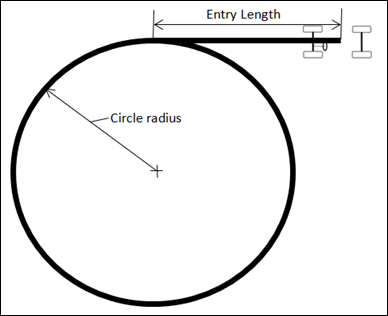 Circle Radius メートル 円部分の半径: イベントの一定半径旋回の部分では車両の重心がこの円に沿って走行します。