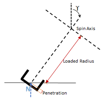 PA1、PA2パラメータが見つからない場合は、タイヤを無荷重半径と同じ半径の剛体ディスクと仮定し、接触パッチ長を以下のように評価します。