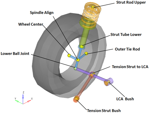 | Tension Strut to LCA | 球 | テンションストラット | LCA | LCAへのテンションストラット | CompliantオプションがNoに設定されると、このジョイントのコンプライアンスは“オフ”に設定され、純粋な球ジョイントとして動作します。 |