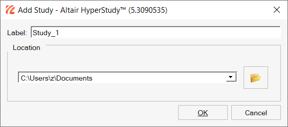 HyperStudy - Add Studyダイアログが表示されます。