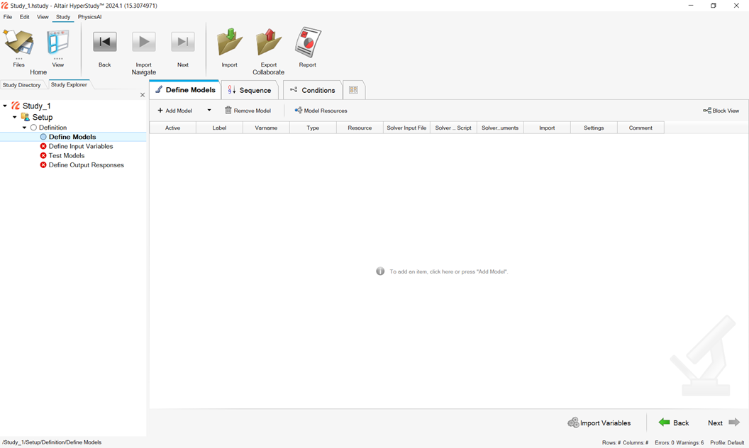 1. HyperStudyを起動する際に、1つ以上のMDLモデルがアクティブになっていることを確認します。