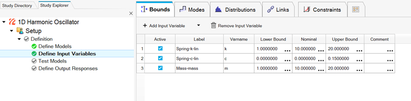 設計変数の制約の限界値を編集するには、それぞれ、Lower Bound、Nominal、およびUpper